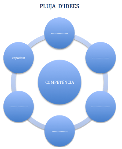 1. Escriviu allò que us suggereixi el mot Competència en un gràfic com el que teniu tot seguit. Poseu-ne els resultats al Fòrum “Pluja d'idees”.