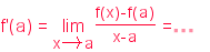 "f'(a)\;=\;\lim_{x \rightarrow a}\frac{f(x)-f(a)}{x-a}\;=\;"+(Pendent[t])
