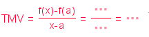 3) "TMV\;=\;\frac{f(x)-f(a)}{x-a}\;=\;\frac{"+n1+"}{"+n2+"}\;=\;"+(n1 /n2)
