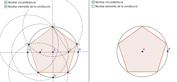 Podeu ocultar tots els elements de la construcció tret del pentàgon o, alternativament, pot ser convenient posar una casella de verificació que els mostri/amagui donant, si ho creieu convenient, un tractament especial a la circumferència.