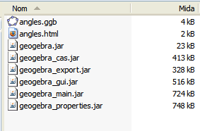 Els altres fitxers que porten extensió jar els ha desat el programa i són necessaris per tal que la finestra del GeoGebra es vegi i sigui activa. Són elements de treball amb el Java que, com ja sabeu, heu de tenir instal·lat al vostre ordinador. Segons quines opcions hàgiu triat, és possible que, d'aquests fitxers, en veieu més o menys.